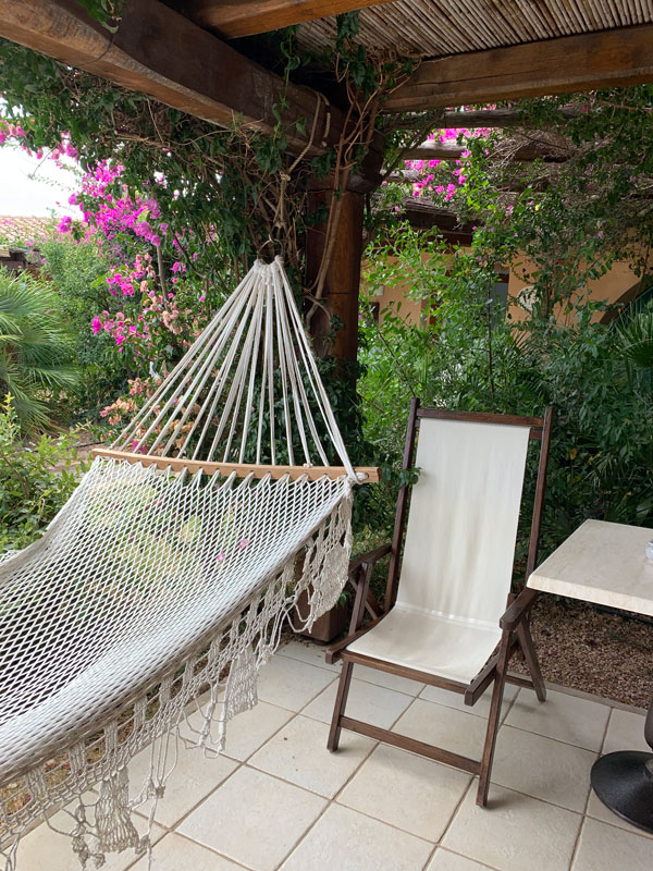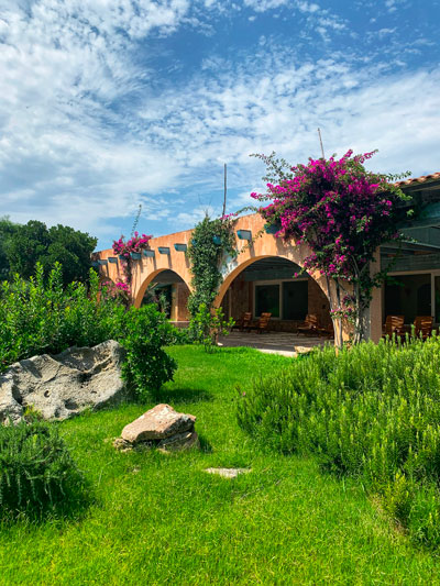 Il resort è un’esclusiva location immersa in un parco naturale. Ed è questo il bello. Il verde non è curato come in un parco inglese, ma cresce libero come se nulla ci fosse intorno a lui. Così ci sono arbusti che s’intrecciano, pietre e ginestre e sentieri che vi faranno perdere nel bel mezzo del resort arrivando in piccole calette e luoghi isolati dove fare un tuffo o semplicemente sedersi a guardare il mare. Ti sembrerà di trovarti in un’isola deserta e, proprio perché il luogo è estremamente riservato, ti sentirai quasi solo nel bel mezzo di tutta quella meraviglia.